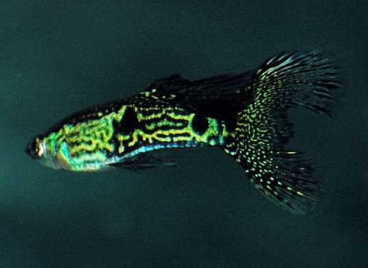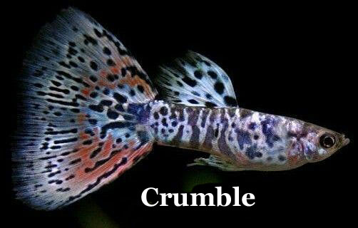 ![]() ![]() ![]() ![]() A number of new types have definitely broken through in the guppy world this year. This has not been done through the traditional guppy clubs, but through the guppy breeders, and more specifically in the guppy farms in Asia. These new types are therefore not yet recognized as such as new "strains" and not yet incorporated into the standards, but that is already happening in Asia, so if Westerners are buying these as export animals - an evolution underway - they will will be included in that list in the foresee-able future. What types are we talking about? Well, there is actually a new generation of crossing products between Snakeskins and Half Blacks . More than 10 years ago, hybrids that were called Green Tiger regularly appeared. These were obtained by crossing Snakeskin or King Cobra with Tuxedo, and those guppies were named Tiger because of the Zebrinus stripes on the their rear body. From the Tuxedo they often brought not only the Platinum with them, which gives a nice shine to the front body, but also a slightly shorter tail fin that is wider and rounder. Further breeding then produced specimens with beautifully fanned tail fins that were named Half Moon (HM) to even Full Moon , and as such have become popular in a short time ( see photo above). Another cross product of these two strains is the Dragon , which shows slightly more characteristics of the Half Black - the caudal black is clearly noticeable - and due to the input of the Tuxedo genes has a more shred-ded pigmentation. The mixing of the Mosaic drawing in the caudal fin of the Tuxedo, and the Lace drawing of the Snakeskin, has resulted in the Dragon's tail drawing consisting of fanned-out stripes, which further enhances the "Moon effect". Most common are the green, yellow and red hybrids (see photo below). After a while they also obtained blue and other color varieties, but those eyes a little less tight because as well blue can harmonize with other colors, it can appear as a main tone with a lot of black a bit dull and "dirty". ![]() ![]() ![]() ![]() ![]() One has gone even one step further. After all, the black pigmentation can show other patterns. If we take a closer look at the Galaxy (see photo on the left), one can see that the "bandit" drawing can take on very erratic shapes, and may or may not be accompanied of additional, similar drawings. The combination of Snakeskin drawing with the "Pixel" drawing of the Tuxedo, can thus also create a kind of crumb pattern spread over the WHOLE body. I have therefore appropriately named this pattern the Crumble drawing. As far as I know, nobody has noticed this pattern so far, so I take the honor of being the first to pick a name. To be clear: I did not breed these guppies myself; but the child may have a name. The interesting thing about this pattern is its whimsy . In all probability, that is also the reason why it has still not been registered as a strain until now: it can range from a kind of thick Zebra stripes, to a number of irregu-lar puzzle pieces, with a whole repertoire of patches and stripes in between. The more the Tuxedo nature weighs in, the coarser the drawing can beco-me. In the photo on the left, they can be seen as thick, uneven stripes - Gross Crumble -. On the contrary, the more the Snakeskin nature weighs, the more finer the pattern can become. In the last photo on the left, one can see a drawing that is not that so far different from the Galaxy, but that runs all over the body: Fine Crumble . If you think this is the end of it, you are wrong. The same can "happen" with that other fixed back body pattern (besides Half Black): Japan Blue. The photo below shows how this pattern, which normally consists of one coherent and even cover layer, can also disintegrate or shred into a random network of strong and weakly occupied pieces. No more uniform "pants", but more a kind of "modern jeans" with all kinds of tears and holes. And in all fairness: that also looks nicer, because the alternation of paler and darker parts, or brighter and weaker colored zones, gives a depth . It looks more like a relief map of mountains and valleys than a floor covered with a carpet. The fixed genome that was Japan Blue up to now seemed monotonous and little nuanced. Now that that pattern is apparent-ly a bit cracked because it has been broken open, it allows more slack. The question is, of course, HOW it is exactly inherited. Because Japan Blue was initially, together with the Tuxedo, one of the easiest strains to breed due to its uniformity and its uniform and constant inheritance. Now that the fixed genome has been broken open, it will take greater effort to breed these beautiful new fish. Only a certain percentage will be like this, I esti-mate, and so there will be more "waste" with downright defective or bad coloring. Breaking open pieces of fixed genome is done by regression , and is therefore always accompanied by a loss. ![]() ![]() ![]() ![]() ![]() ![]() ![]() The same pursuit of depth characterizes the revival of the albino . Just as a reminder: in albino, all "coatings" are actually stripped off because they become transparent. So an albino is actually a guppy who does streap-tease : he has pulled out all jackets and all clothes and stands "in his un-derpants". Now, what applies to humans, also applies to albino: not every-one looks great in his underpants. So what applies to Cristiano Ronaldo does not apply to everyone. The same goes for albinos: as recessive homo-zygotes they look rather flat and pale, if they do not also have some genes for color nuances. Let us not forget that the main use of albinos in guppy breeding has so far mainly been to let "disappear" other, disturbing genetic material in monochrome color strains. With albino white, for example, one does not see anymore the black spots or colored zones that can be seen with the normal colored gray form. So care must be taken to make WELL use of this ability. Strippers are known to go 